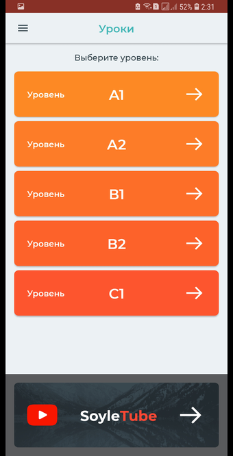 Soyle adalah aplikasi pendidikan yang dirancang untuk membantu pengguna mempelajari bahasa Kazakh dengan cara yang mudah dan efisien. Melalui platform Android ini, pengguna dapat mengakses kursus yang menawarkan pembelajaran literasi dan percakapan dalam bahasa Kazakh. Fitur utama aplikasi ini mencakup pelajaran interaktif yang memungkinkan pengguna untuk membaca, mengucapkan, dan menyusun kalimat dengan benar. Dengan pendekatan yang terstruktur, kursus ini bertujuan untuk meningkatkan kemampuan berbicara dan memahami bahasa Kazakh dalam berbagai situasi komunikasi.